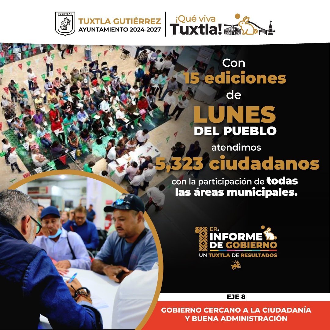 En este sentido, resaltó que con el programa “Lunes del Pueblo”, se atendió de manera directa a más de 5,323 ciudadanas y ciudadanos en 15 ediciones, creando un espacio de diálogo cercano y transparente entre la autoridad municipal y la población.