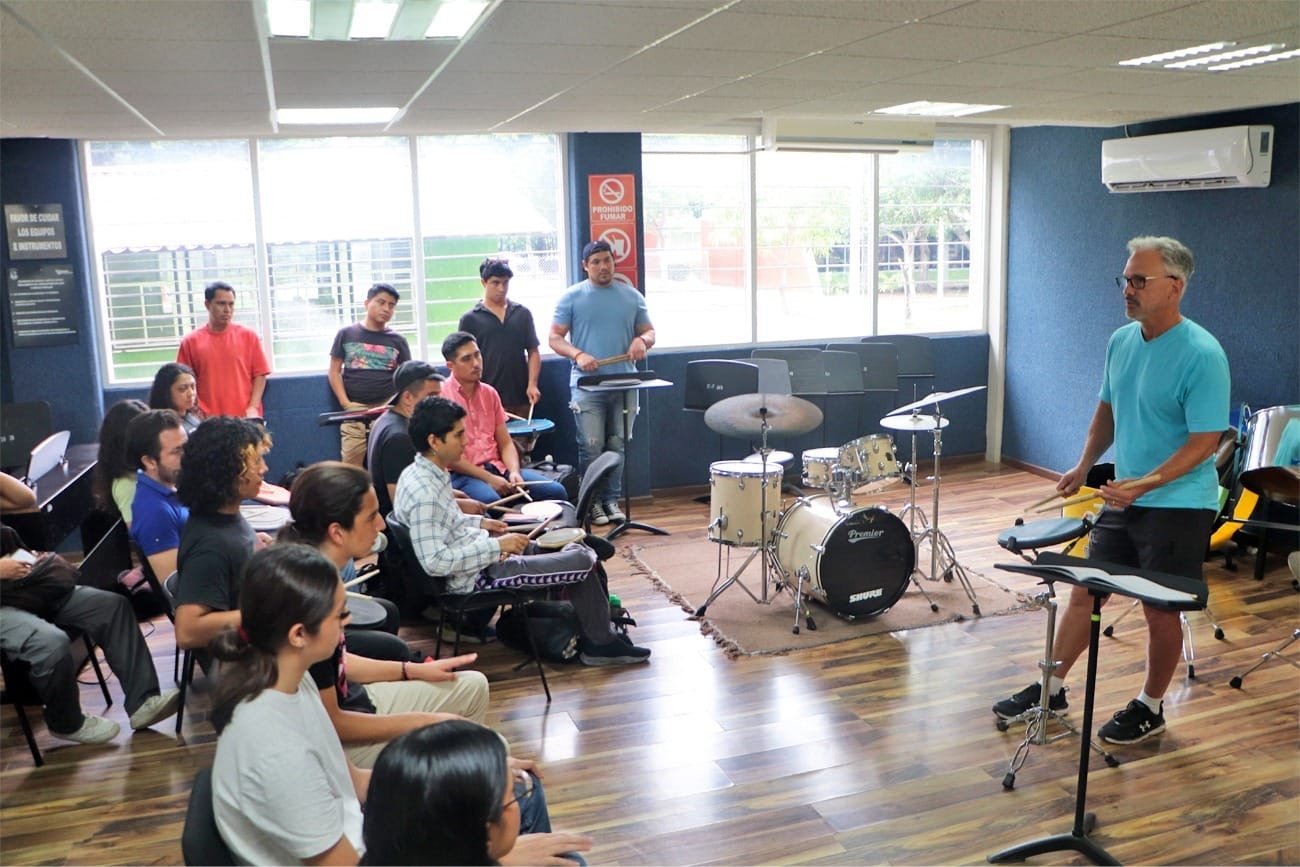 Durante una visita académica a la Universidad Autónoma de Ciencias y Artes de Chiapas (UNICACH), el Dr. John Wooton, catedrático de la Universidad del Sur de Misisipi y referente internacional en percusión, elogió el talento y entusiasmo de las y los estudiantes de la Facultad de Música, quienes participaron activamente en dos clases magistrales.